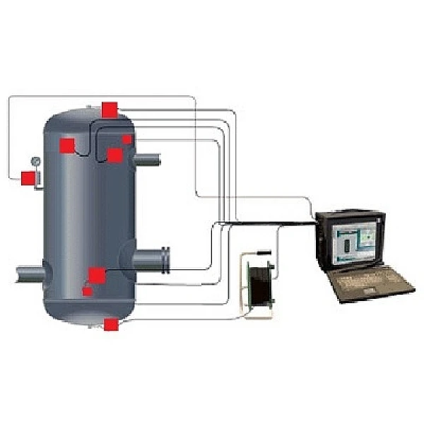 АЭ система является распределённой системой сбора и обработки данных.Преобразование АЭ-сигнала с датчика (преобразователя АЭ) в цифровой вид и последующая обработкапроизводятся непосредственно в модуле сбора данных (модуль АЭ), который располагается также на объекте контроля рядом с преобразователем АЭ. Затем полученные в результате обработки данные передаются в центральный блок сбора и обработки на базе индустриального компьютера. |