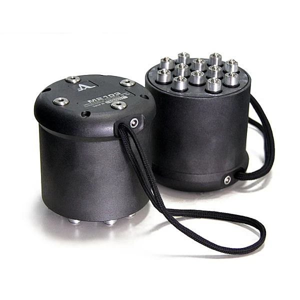 Две антенные решетки M2103 используются совместно с прибором А1220 MONOLITH и применяются для сквозного прозвучивания объектов из бетона и железобетона в диапазоне толщин от 200 до 2500 мм. Отличительной особенностью данных решеток является обследования бетонных колонн с густо расположенной арматурой, где контроль эхо-методом осложнен, а порой и невозможен из-за большого уровня структурного шума исследуемого объекта. В данном случае использование решеток М2103 повышает соотношение сигнал/шум по сравнению с эхо-методом, упрощая поиск дефектов, а также позволяет проводить измерения скорости и времени прохождения ультразвуковой волны в объектах с большой толщиной.