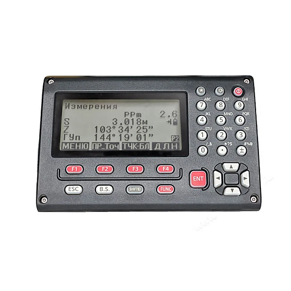 Управление дисплеем и функциями тахеометра обеспечивается за счет функциональных клавиш. С их помощью, вы можете выбирать пункты меню, отменять последнюю операцию, включать подсветку и настраивать тахеометр.