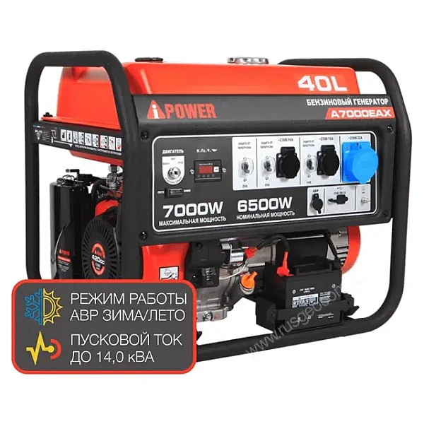 Бензиновый генератор A-iPower A7000EAX в тихом зимнем кожухе 1200 - надежный источник питания мощностью 6.5 кВт. Главные преимущества модели - до 12 часов работы на одном баке топлива и возможность подключения приборов с пусковой мощностью до 14 кВA, например, высоко производительного ручного инструмента с электродвигателем.