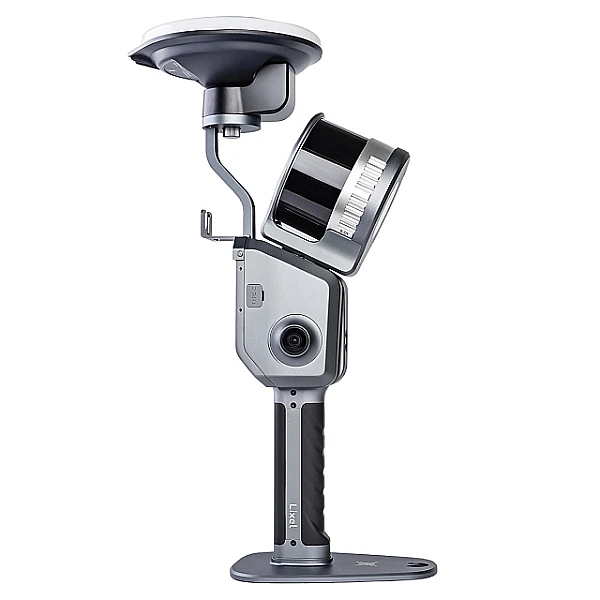 Выполненный в прочном алюминиевом корпусе со съемной нижней ручкой, в которую встроен аккумулятор, SLAM-сканер снабжен 32-канальным сканирующим модулем с максимальной дальностью действия до 120 м и скоростью сбора данных до 640 000 точек/с. Вращаясь одновременно в двух взаимно перпендикулярных направлениях, он перекрывает сектор обзора 270° по вертикали и 360° - в горизонтальной плоскости.