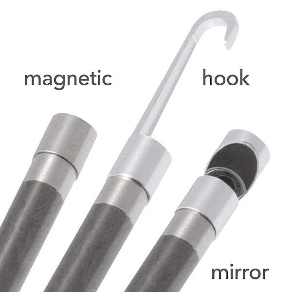 Мини-видеоскоп BO22 позволяет удобно осматривать области, которые обычно были бы полностью недоступны. Мелкие кусочки и детали, которые вы случайно уронили в моторный отсек или другие части машин, к которым трудно получить доступ, теперь можно легко извлечь с помощью легко монтируемого крючка или магнитного крепления.
