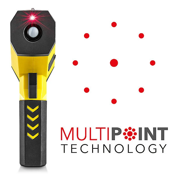 Профессиональный пирометр TP10 сочетает в себе точные измерительные технологии, гибкие возможности применения и множество сложных измерительных функций с простыми характеристиками обработки. Будь то диагностика и техническое обслуживание систем отопления, кондиционирования и вентиляции, или обширные задачи по техническому обслуживанию в промышленном и строительном секторе - благодаря большому диапазону измерения, высокому оптическому разрешению, регулируемому коэффициенту излучения, этот прецизионный инфракрасный термометр идеально подходит для самых сложных измерительных задач. Высокое оптическое разрешение позволяет пирометру Trotec TP10 точно измерять температуру поверхности даже на очень маленьких компонентах и удаленных объектах. Встроенная функция регистрации данных позволяет сохранить до 30 точек измерения. Во время каждого измерения максимальное, минимальное, среднее и дифференциальное значение автоматически определяются и отображаются в дополнение к текущему измеренному значению. Для непрерывного измерения TP10 может быть дополнительно закреплен на штативе. В TP10 реализована инновационная многоточечная лазерная технология, вместо того, чтобы просто указывать на цель измерения с помощью одного лазера или выделять размер пятна измерения с помощью двойного лазера, многоточечный лазер позволяет захватывать объект измерения легко и точно. В то время как один нацеливающий лазер в центре указывает точку прицеливания, еще восемь лазеров показывают граничные точки, окружающие пятно измерения, что позволяет проводить точные измерения за минимальное время.