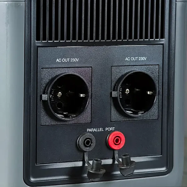 Эта модель также оснащена беспроводной зарядкой для смартфонов с максимальной мощностью 15Вт. 2 розетки переменного тока стабильно обеспечивают 1200 Вт мощности для электроприборов.