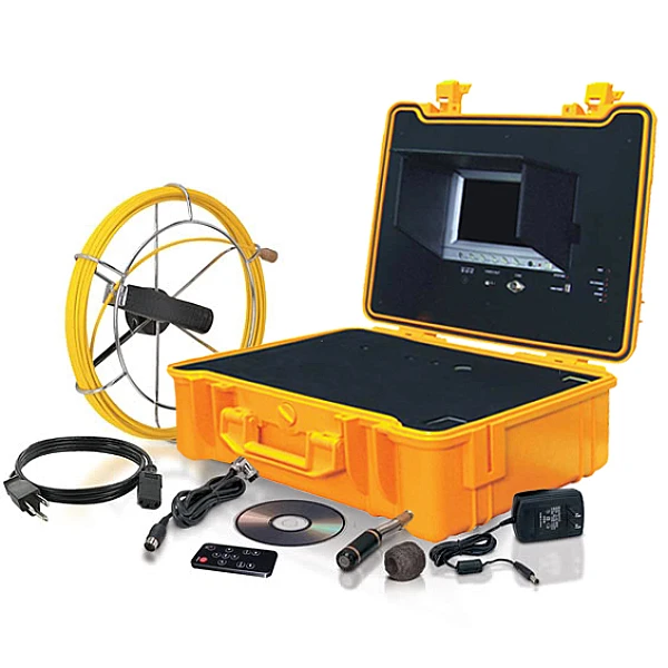 Компактная переносная телеинспекционная система с кабелем 20 или 40 метров, цветной камерой с встроенным зондом 512 Гц, встроенным аккумулятором, встроенным микрофоном и функцией записи на USB-flash накопитель или Micro SD (TF) карту памяти.