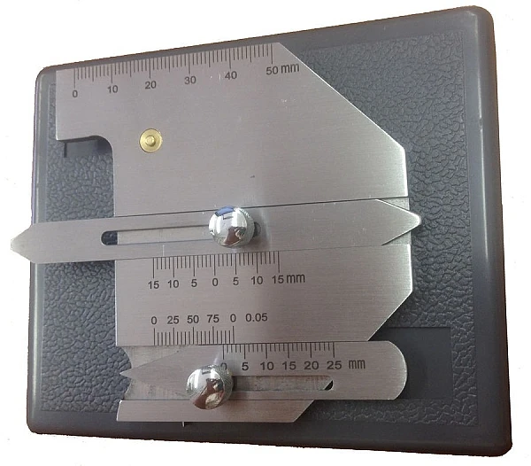 Cостоит из четырех компонентов: основной шкалы, измерителя высоты, измерителя глубины подреза и универсального измерителя. Применяется для измерения смещения, угла кромки, высоты, ширины зазора и глубины подреза сварного шва, и др. и подходит для контроля котлов, мостов, кораблей, сосудов давления и труб нефтяного сортамента.