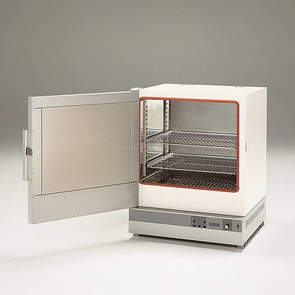 Корпус выполнен из холоднокатной стали и покрыт меламиновой смолой для защиты от коррозии и химикатов, внутренняя облицовка камеры – из листовой нержавеющей стали, полки – из нержавеющей стали с перфорацией, менжета для герметизации двери – из силиконовой резины, спираль нагревателя – из нихромовой проволоки, изоляционный материал камеры – стекловолокно.